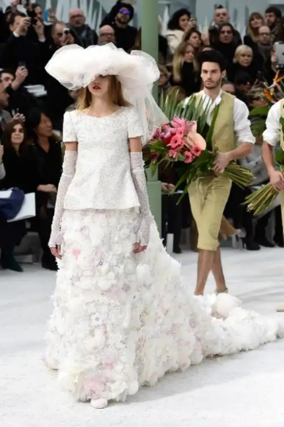 第一件短款婚纱:1926年设计师Coco Chanel推出及膝婚纱,搭配长头纱,颠覆传统。